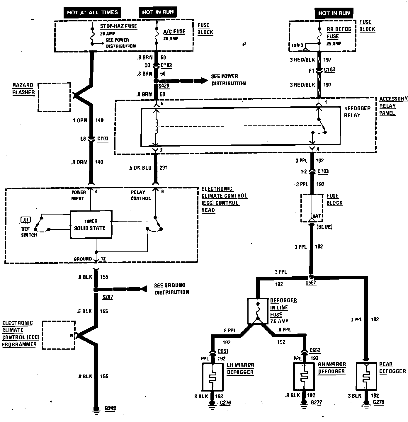 Mirror & Rear Window Defogger Wiring Circuit: