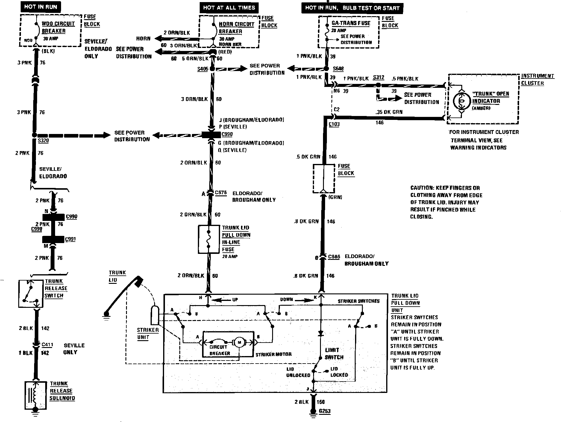 Trunk Lid Pull Down, Trunk Open Indicator & Trunk Release Wiring Circuit: