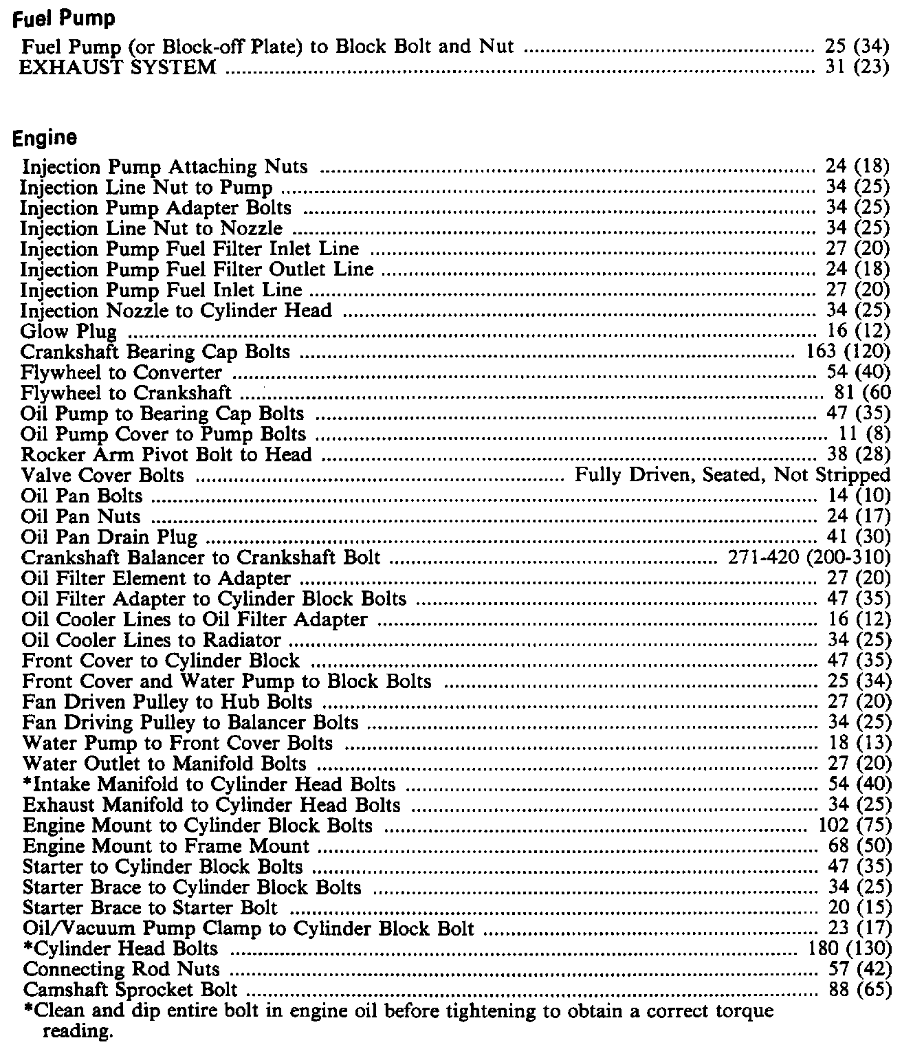 Torque Specifications: