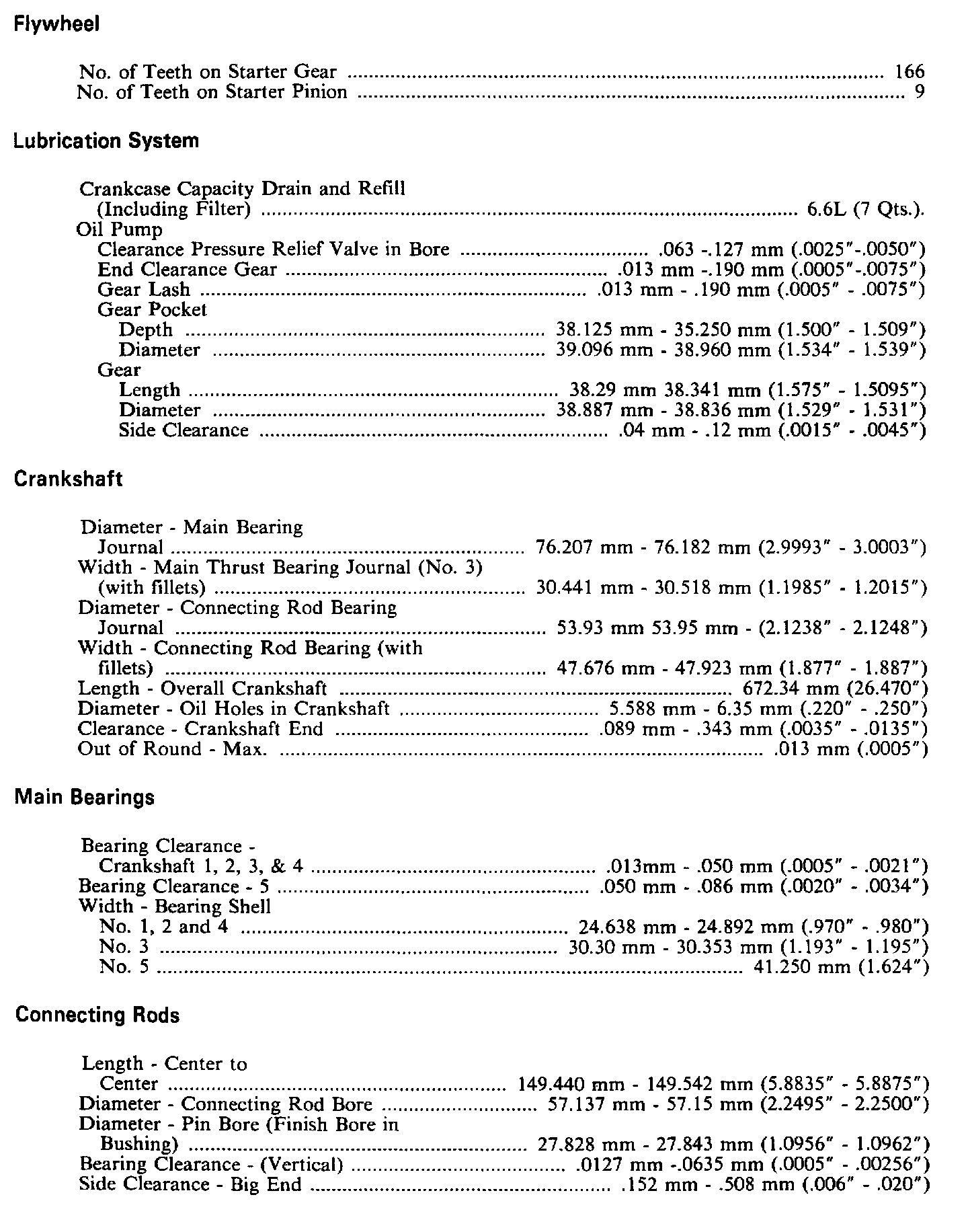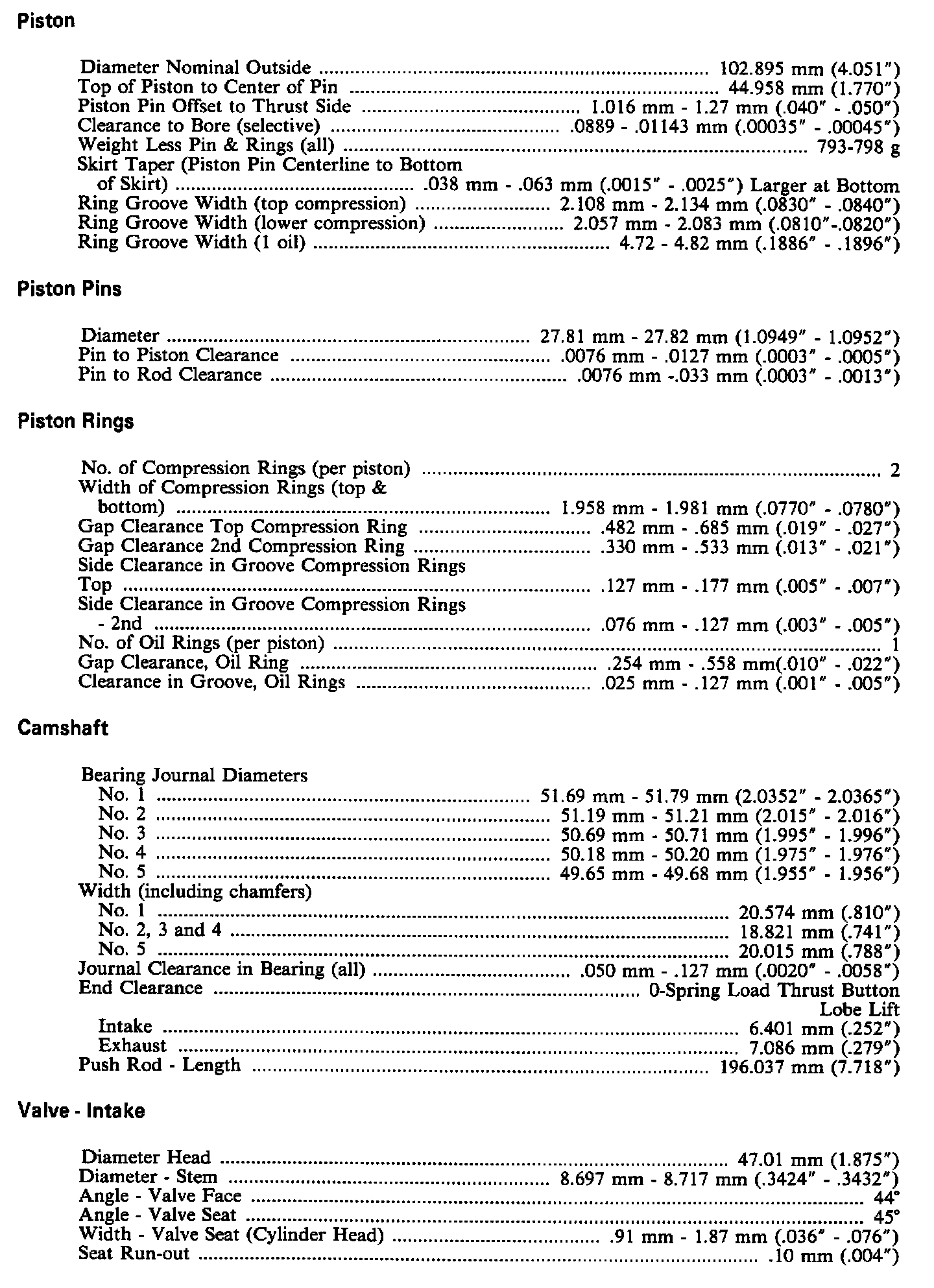 Engine Specifications: