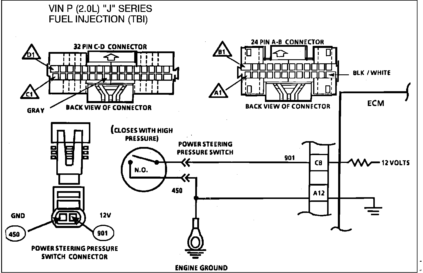 The power steering pressure switch is normally open to ground, and circuit 901 will be near battery voltage.