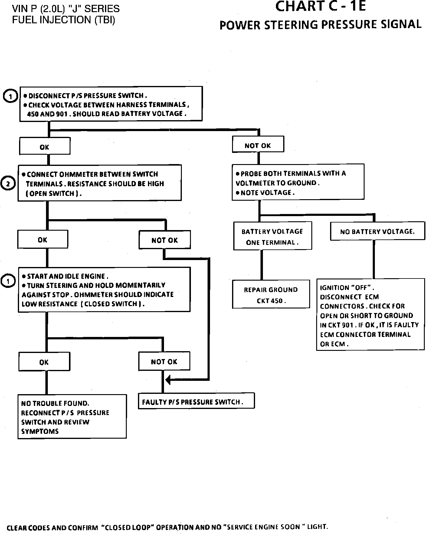 1. Checks for ECM signal voltage on CKT 901, and confirms that ground CKT 450 is OK.