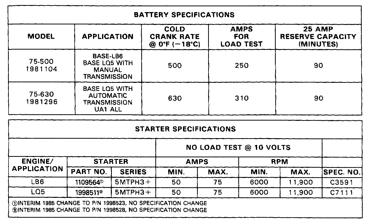 Starting and Charging: Specifications