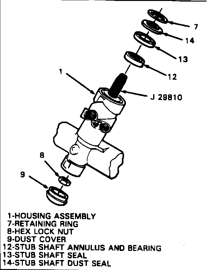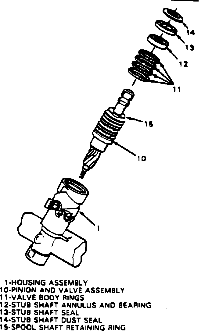 10. Remove stub shaft dust seal, stub shaft seal stub shaft bearing annulus assembly, pinion and valve assembly, with spool shaft retaining ring. and valve body rings attached.