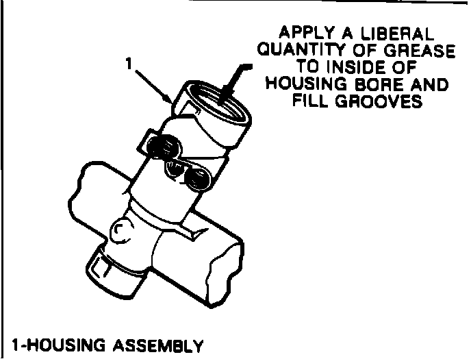 Apply a liberal quantity of grease to the valve housing bore. Be sure to fill grooves with grease. This will ease reassembly of valve into housing.