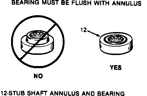 Inspect stub shaft bearing annulus for flatness and damage. Clean before reassembly.