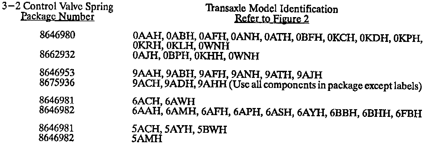 The 3-2 control valve spring comes in a service kit which includes a 3-2 control valve spring, spacer plate gaskets, and instruction sheets.