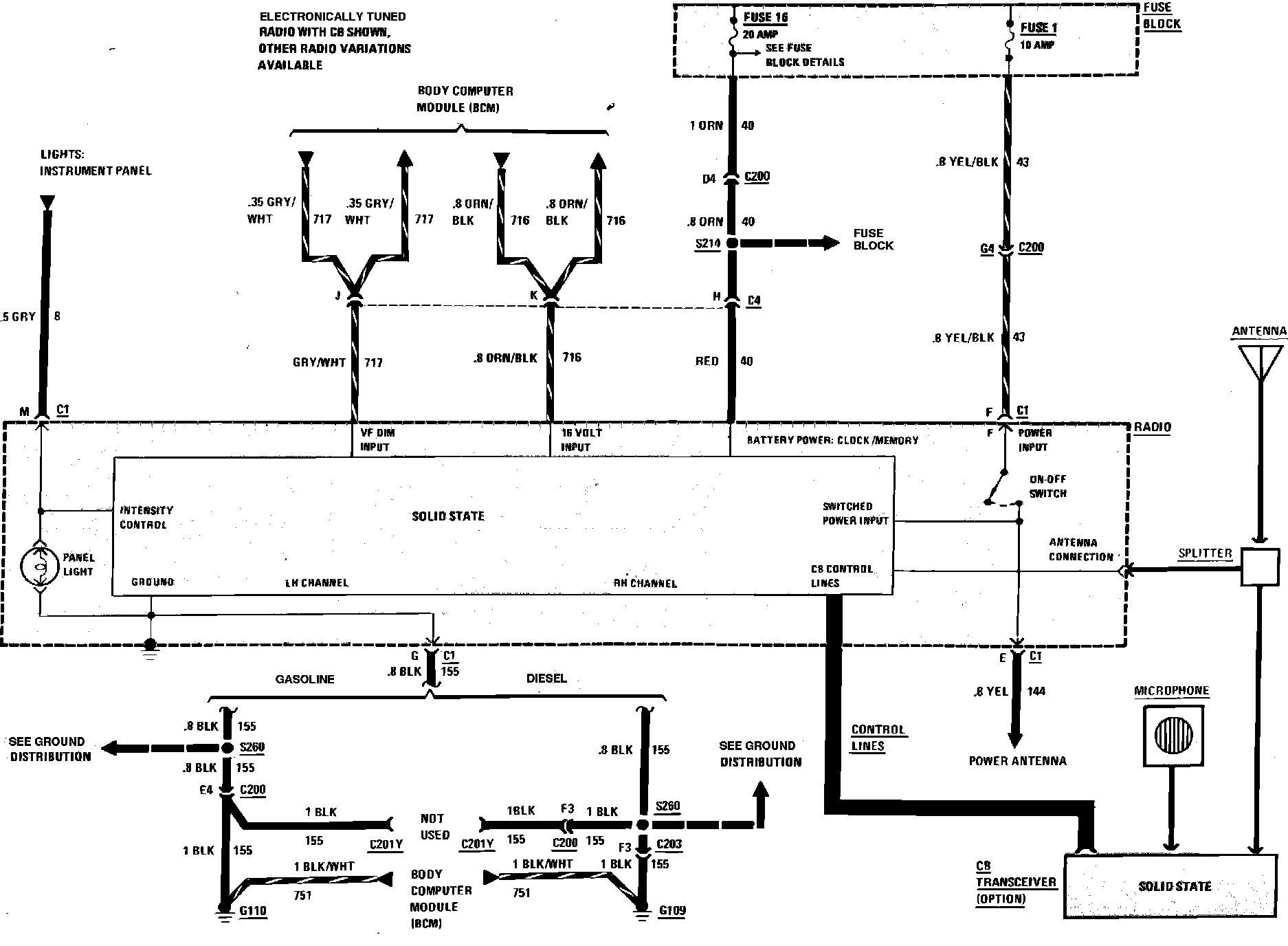 Radio Wiring Circuit, Less Delco Bose: