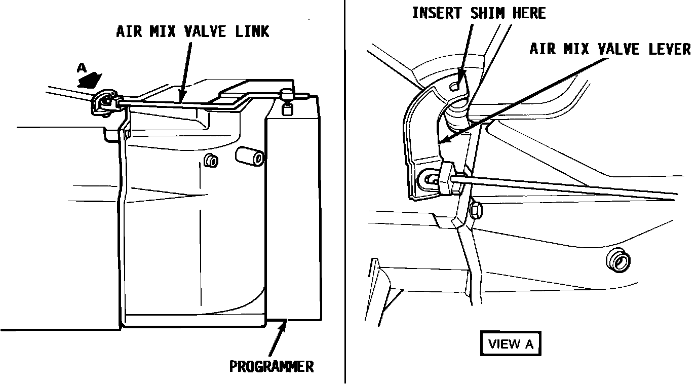7. Set the temperature setting on the Electronic Climate Control panel to 60~F. Check to verify that the programmer arm and air mix valve travels to the max A/C position.