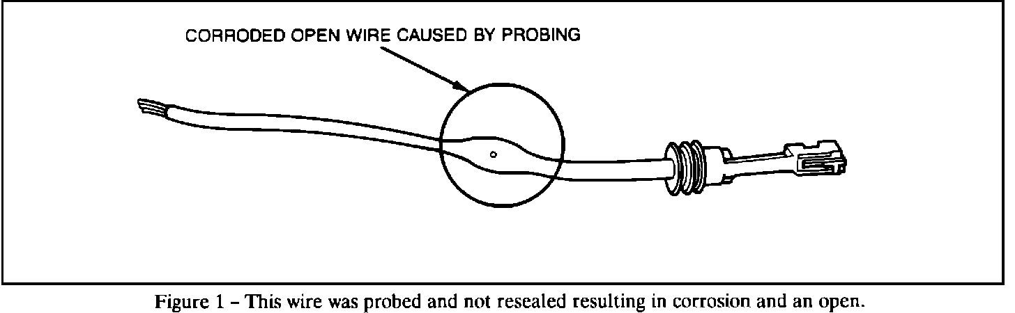 NOTICE: If a wire is probed with a sharp instrument and not properly sealed afterward, the wire will corrode and an open circuit will result. Refer to Figure 1.