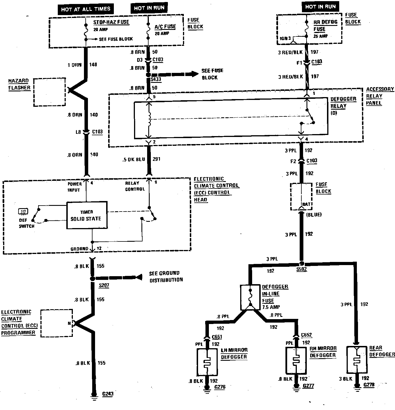Rear Window & Mirror Defogger Wiring Circuit: