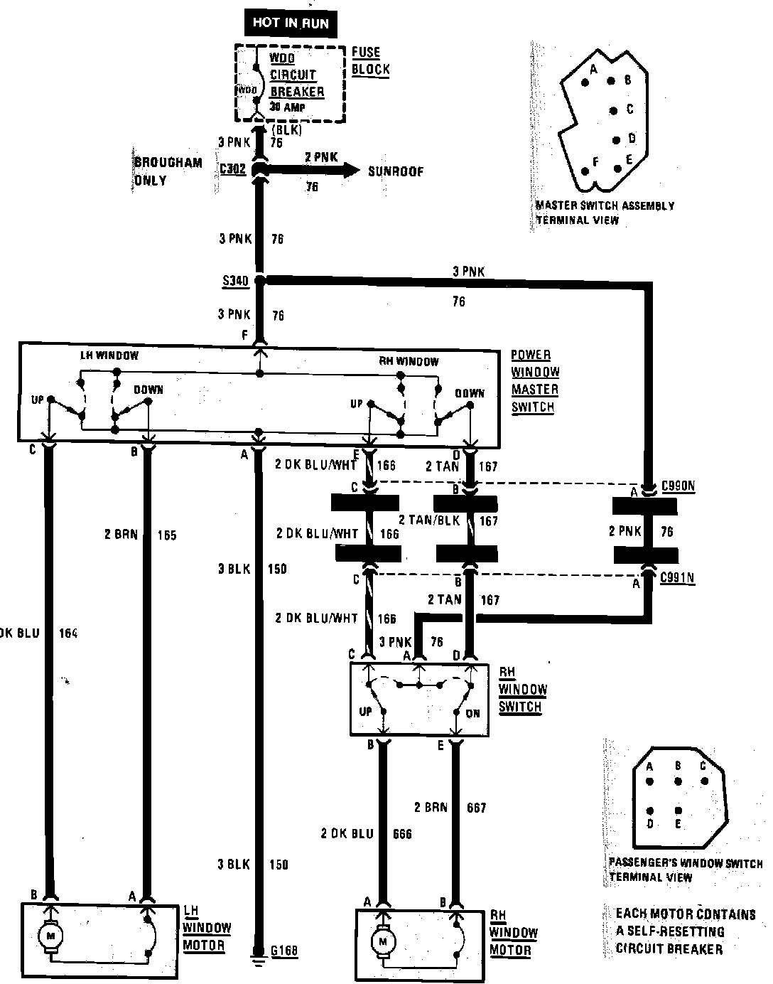 Power Window (Less Memory Seats) Wiring Circuit Hard Top: