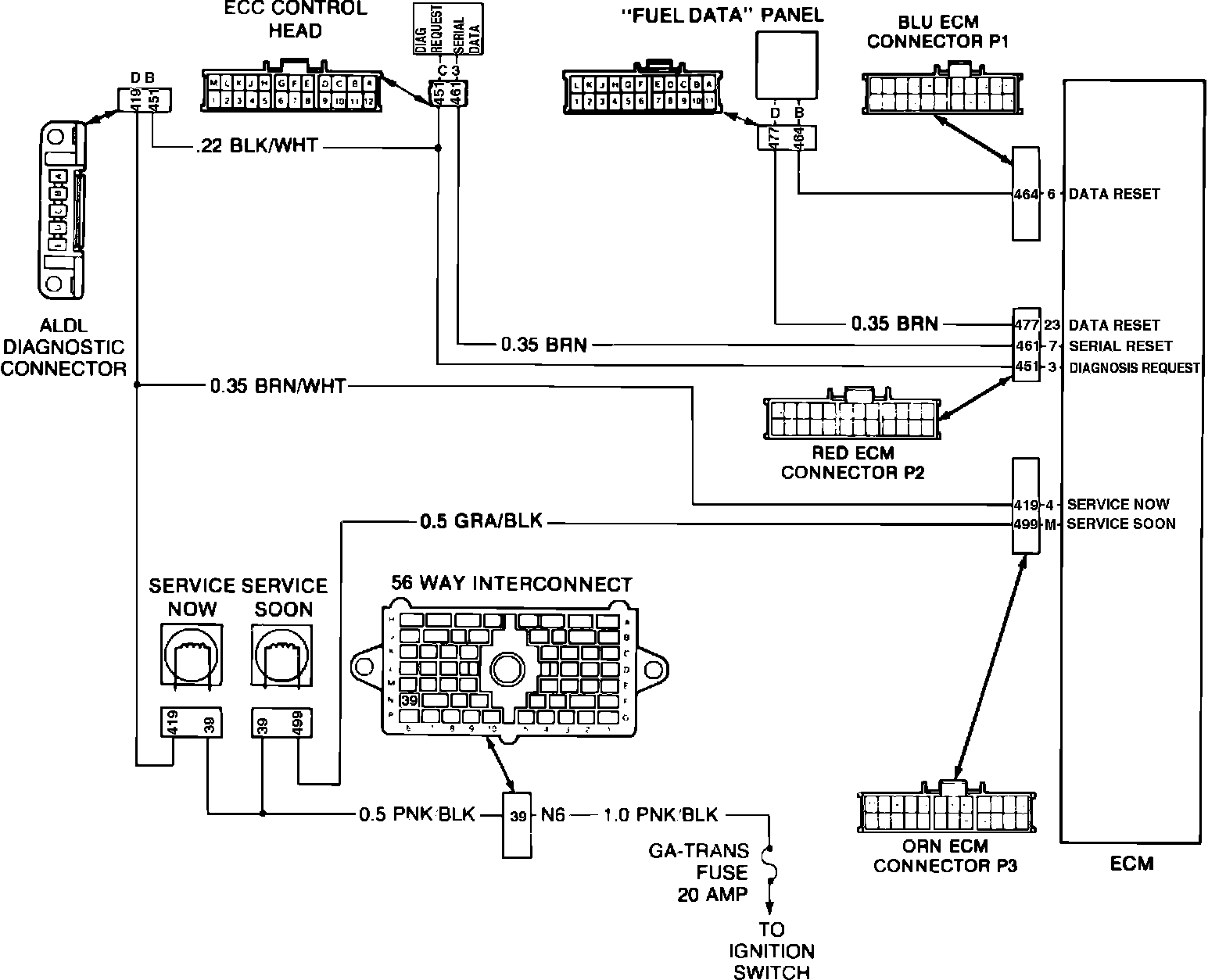 1. The ECM determines fuel consumption based on vehicle speed and fuel delivered to the engine. This information is sent to the ECC control head through circuit 461. The ECC control head interprets this information and illuminates the appropriate segments of the ``Fuel Data'' display panel.