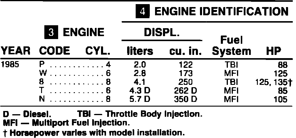 Engine Identification - 1985: