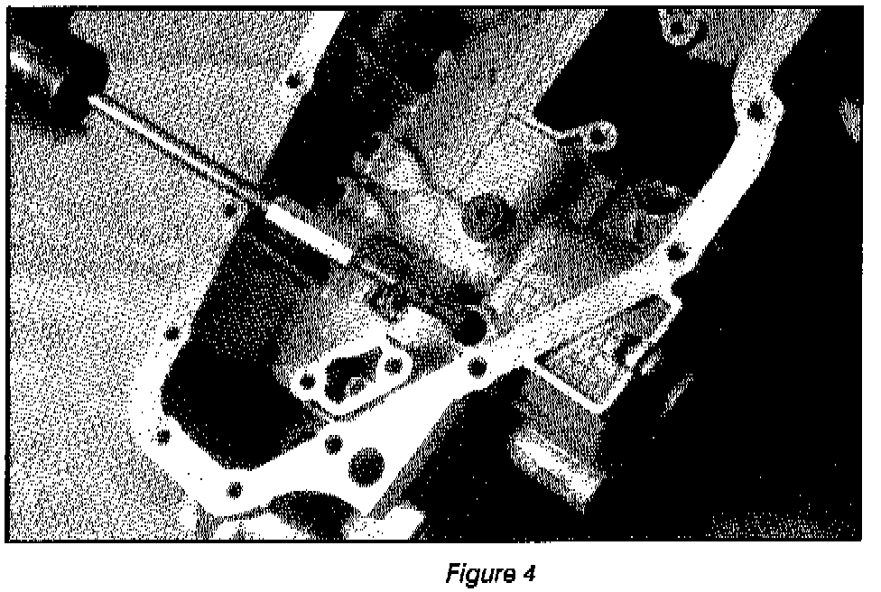 Checking the # 7 checkball capsule is easy. Put the transaxle on its back. Use a pencil to push the checkball against its seat (figure 1). Now pour solvent into the capsule (make sure the 1-2 servo is still in its bore). If the checkball capsule leaks, you'll see solvent running out of its vent (figure 2). If this happens the check ball capsule needs to be replaced. Some wetness is normal since the servo also has a bleed orifice that leaks a little.