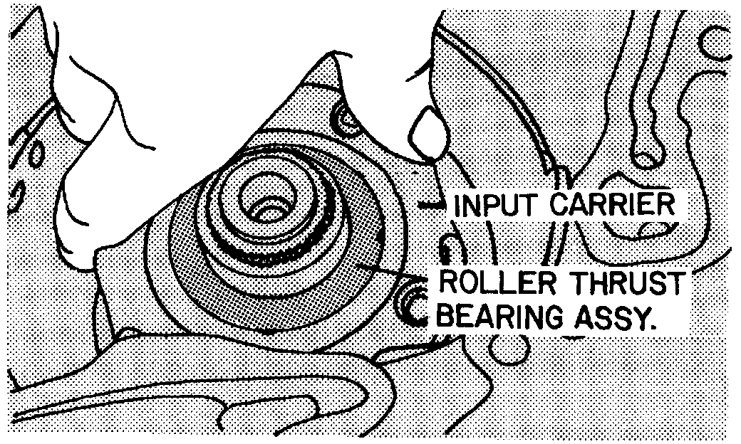 4. Thoroughly clean, air dry and inspect input carrier to input internal gear thrust bearing assembly for pitted or rough conditions.
