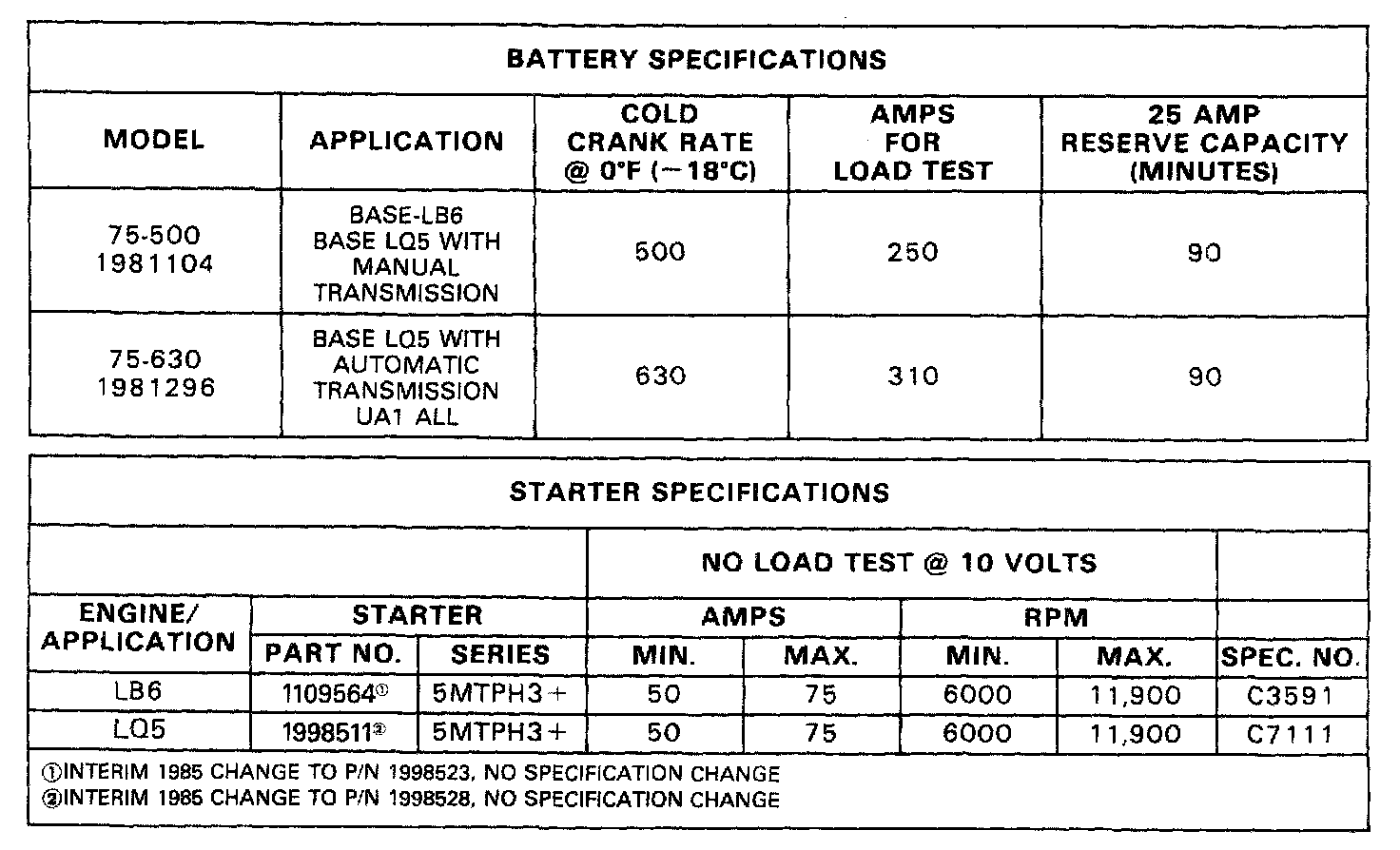 Starting and Charging: Specifications