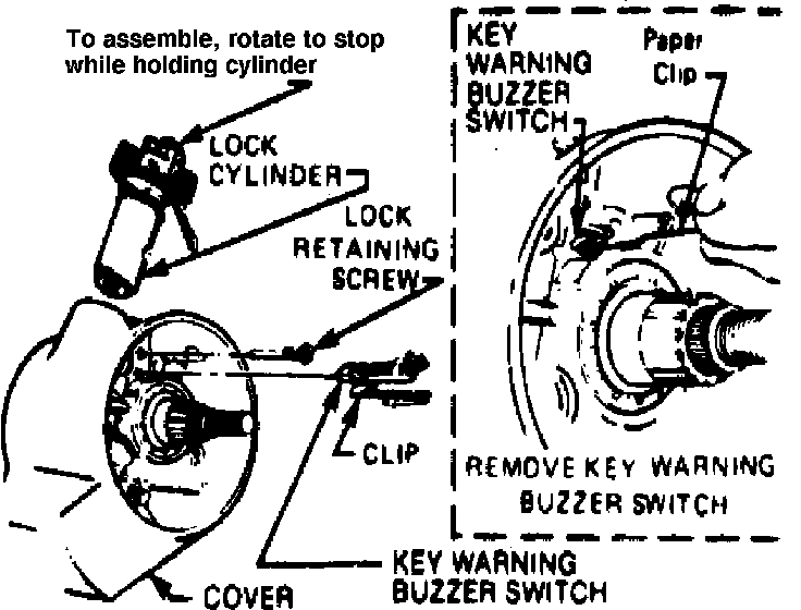 3. Remove lock retaining screw, then withdraw lock cylinder assembly from column.