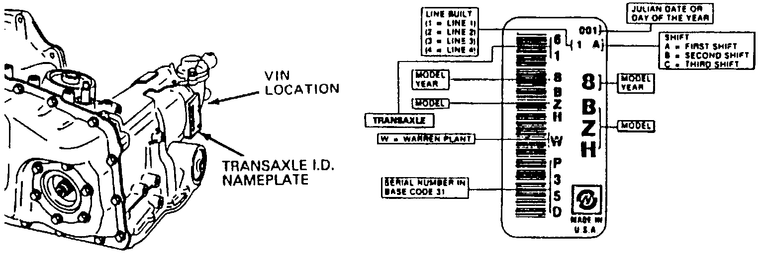 These transaxles may be identified by the codes stamped onto a plate located on the right rear side of the transaxle housing.