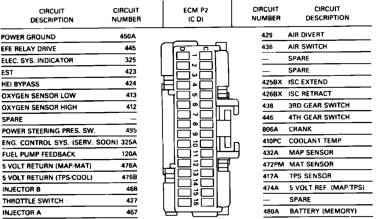 P2 ECM Connector Terminal Identification