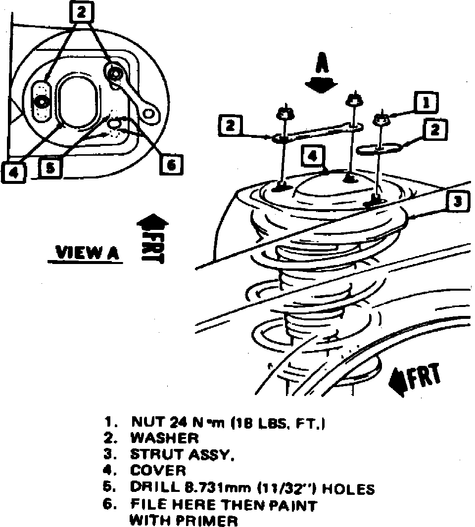 7. Torque top strut attaching nuts to 18 ft. lbs.