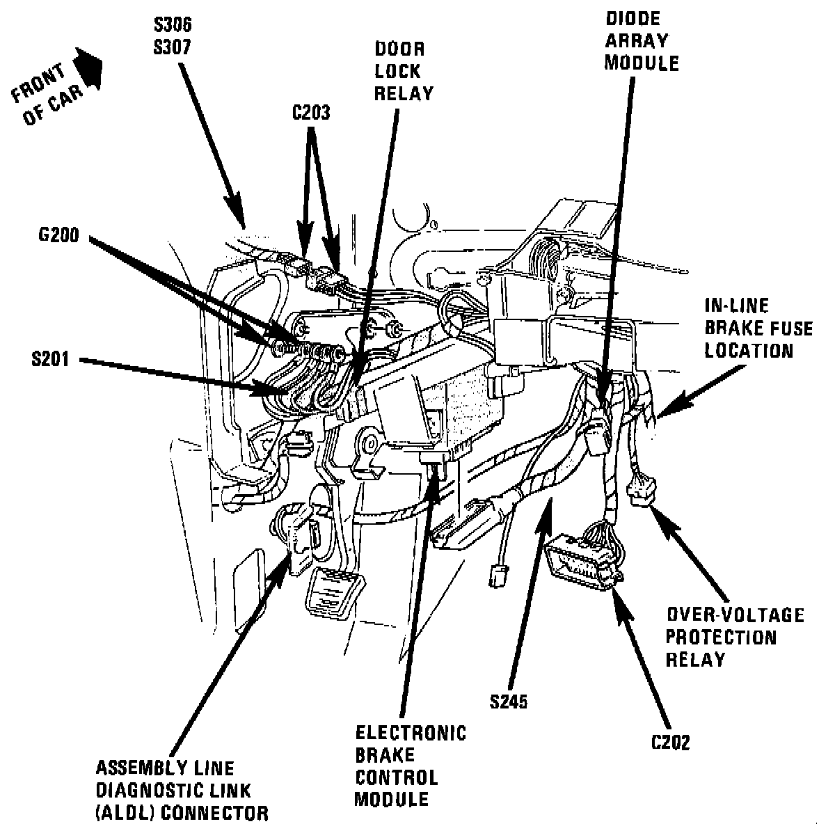 Behind LH side of I/P, left of steering column