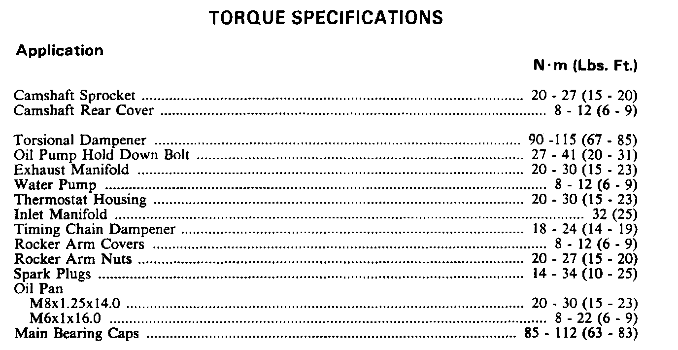 Torque Specifications: