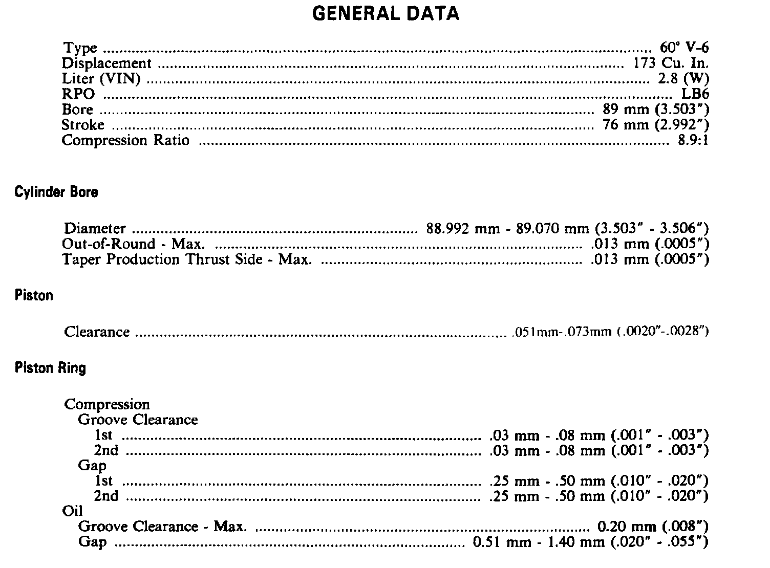 Cimarron V6-173 2.8L