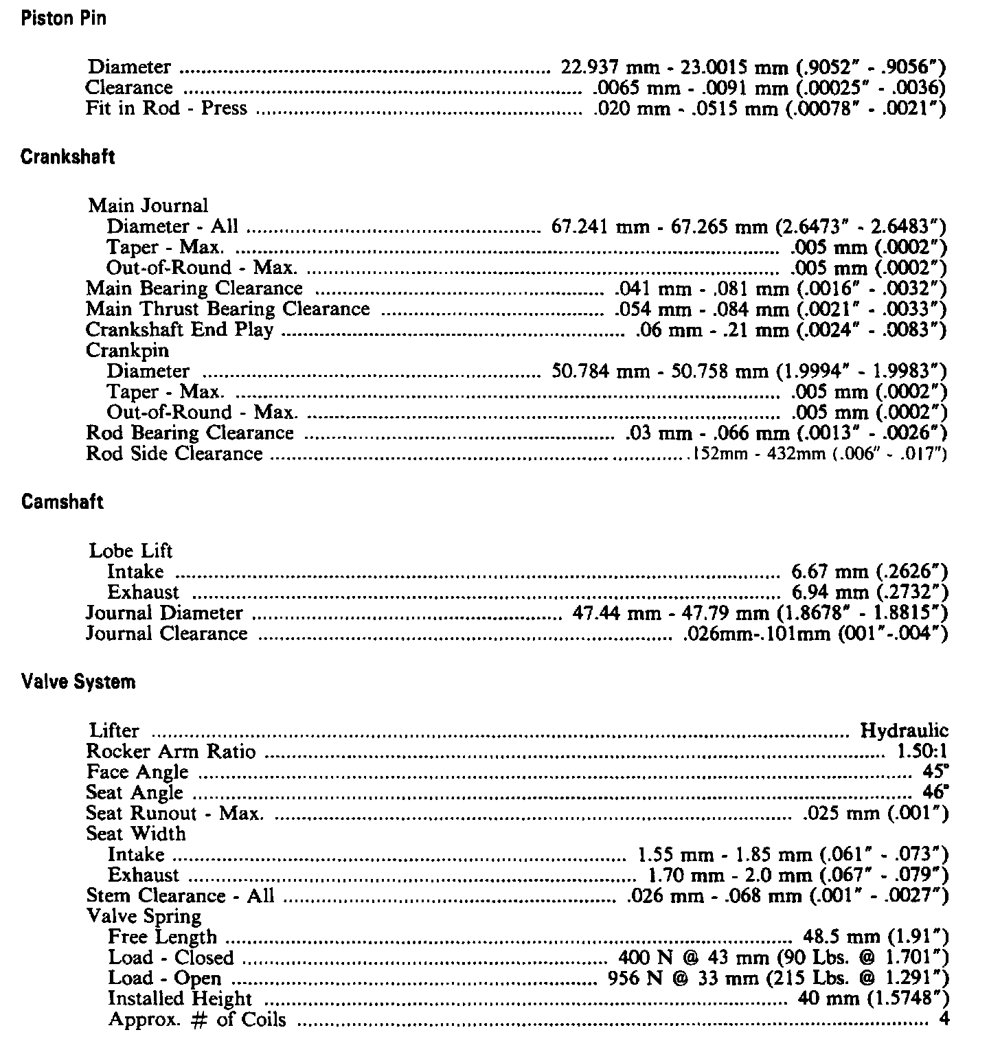 Continued Engine Specifications: