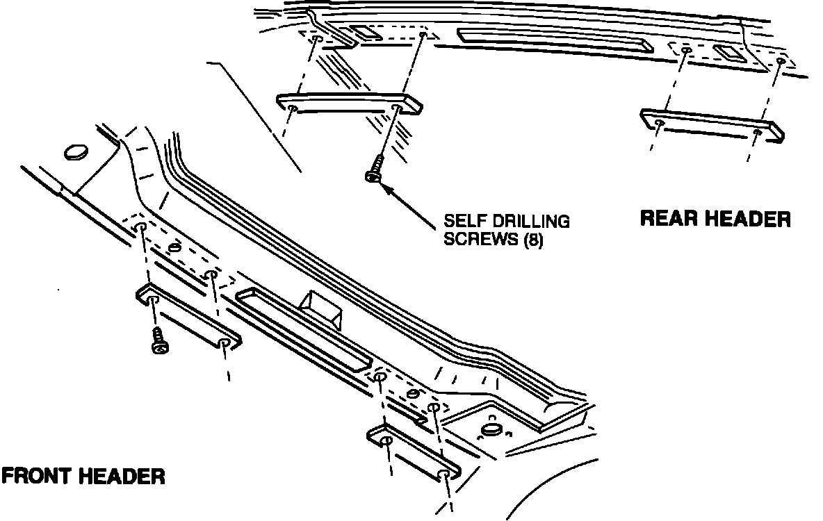 5. Attach the four additional male Velcro (R) strips to the front and rear headers as indicated in Figure 3 using the eight self-drilling screws provided.