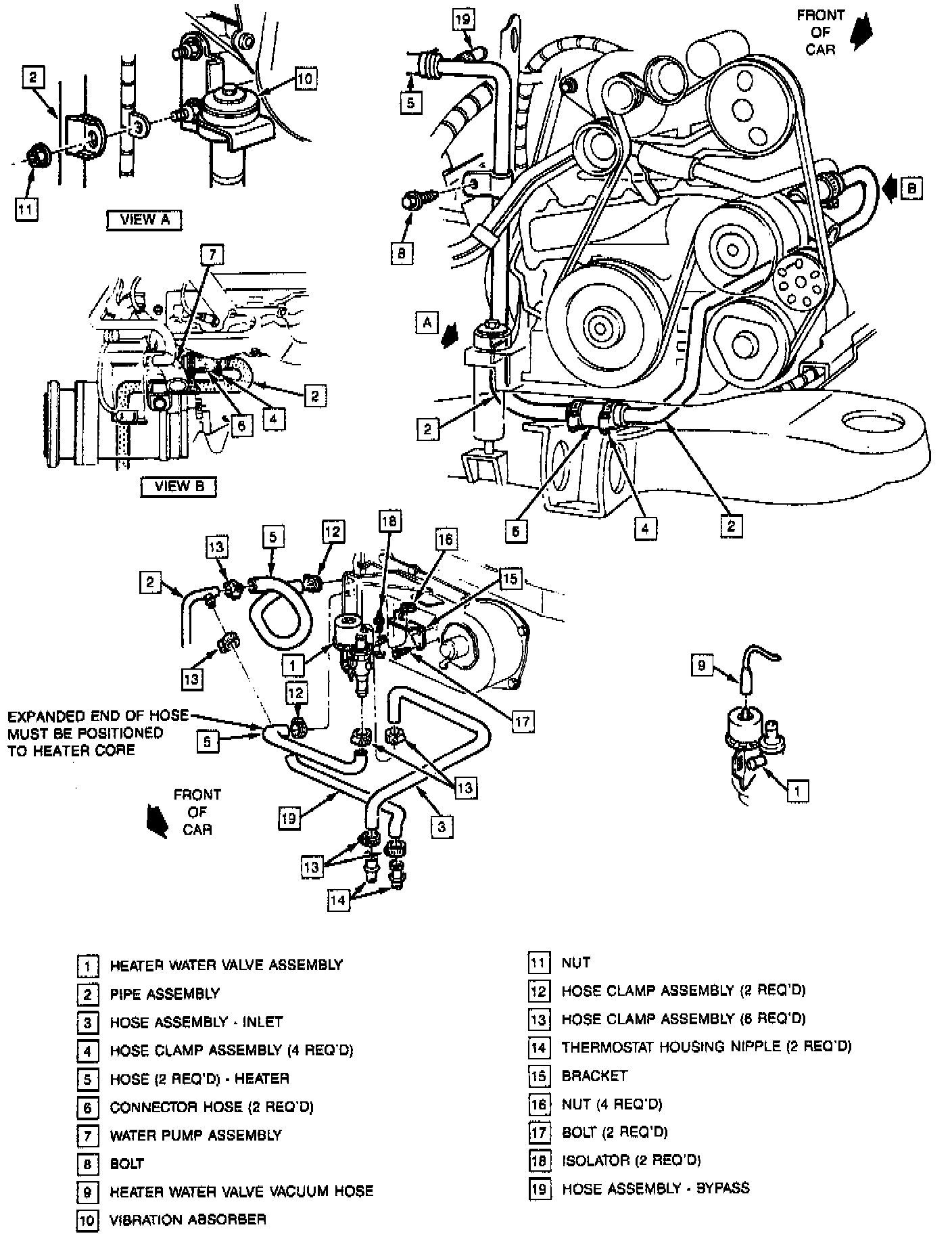 Heater Water Pipes, Hoses And Valve:
