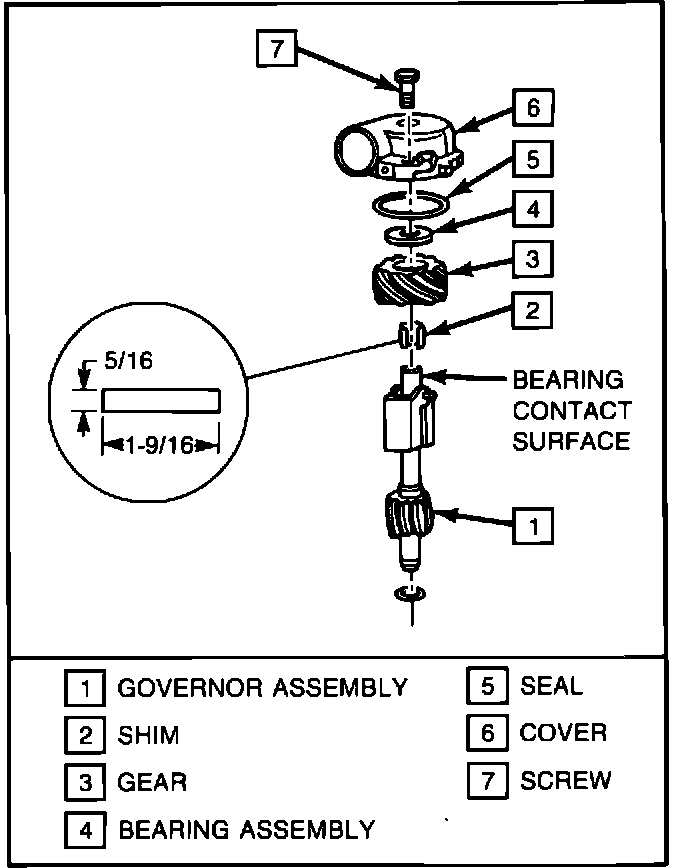 6. Wrap this shim around the governor shaft and install drive gear over the shim ensuring a press fit and eliminating any looseness (see Figure 1).