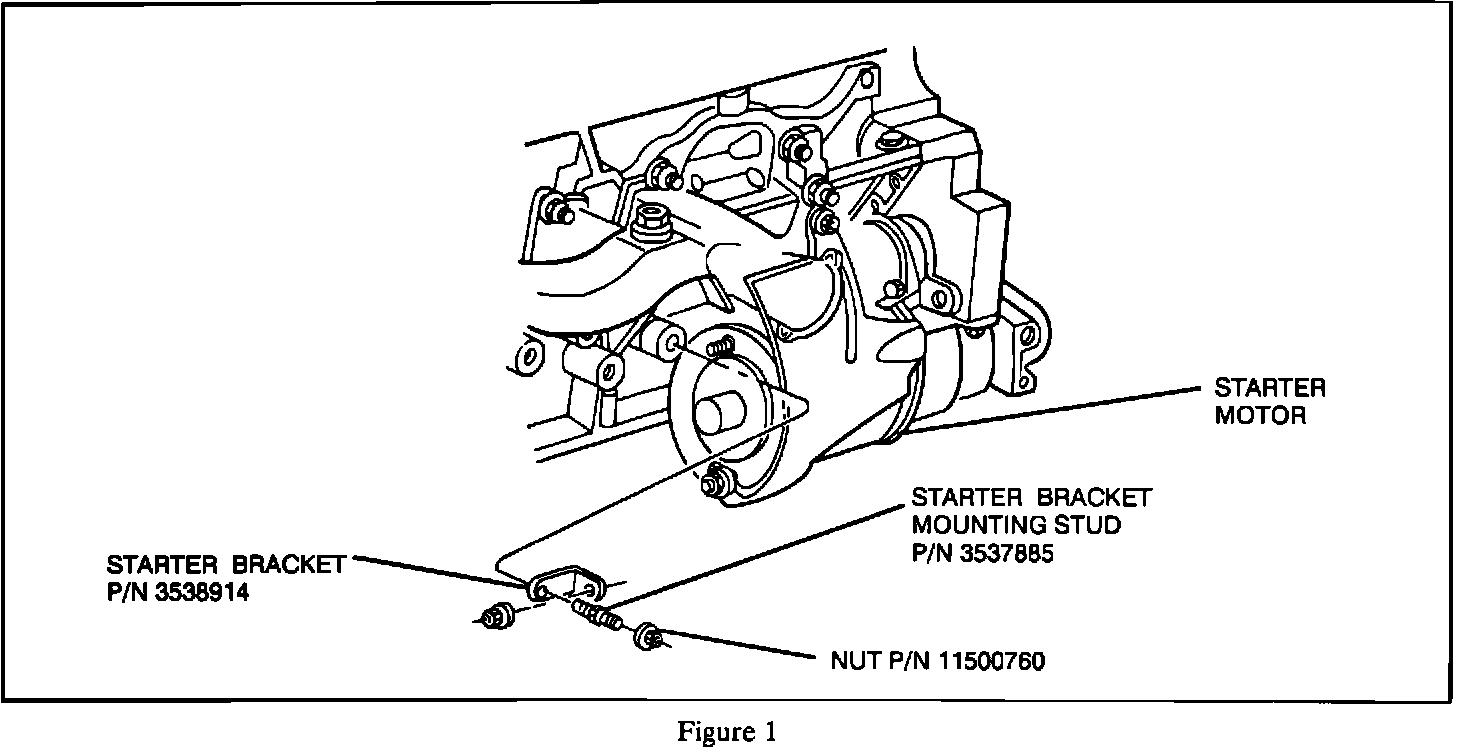 2. Install a new starter bracket, P/N 3538914, and stud, P/N 3537885. Torque to 38 N-m (27 lbs.ft.).