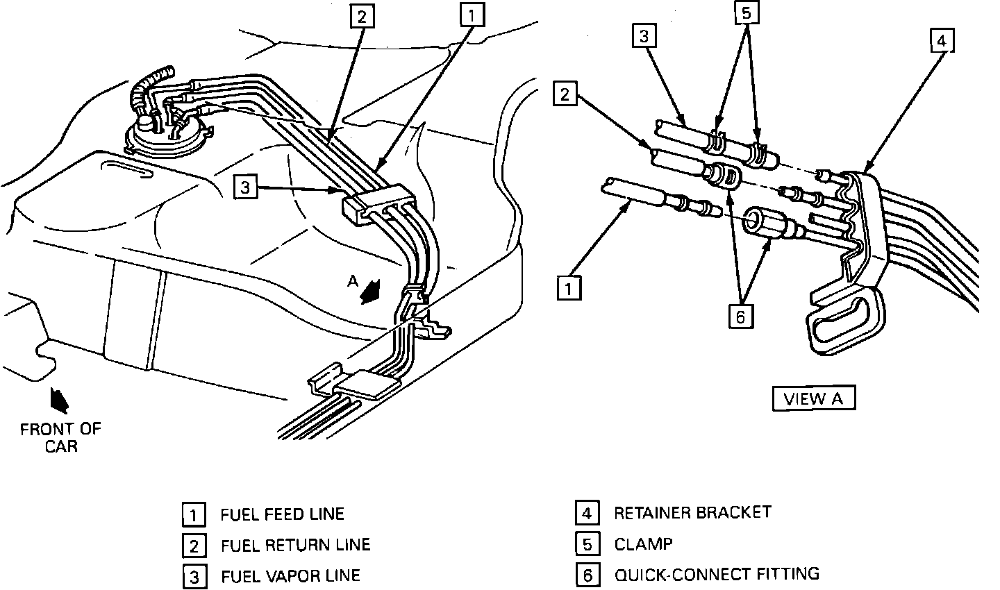 5. Disconnect the quick-connect fittings at the fuel level meter fuel feed and return lines: