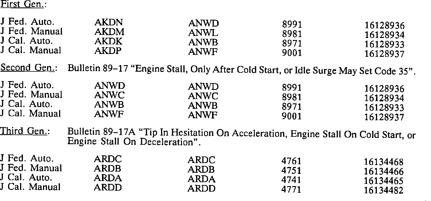 1988 J EQUIPPED WITH 2.8L PFI V-6 ENGINE