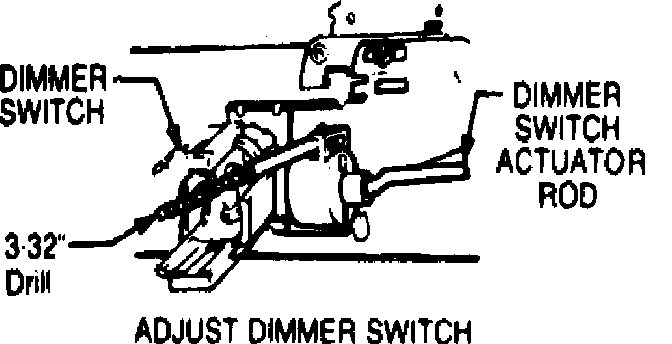 5. Remove dimmer switch mounting nut, screw and the dimmer switch, then tape actuator rod to steering column.