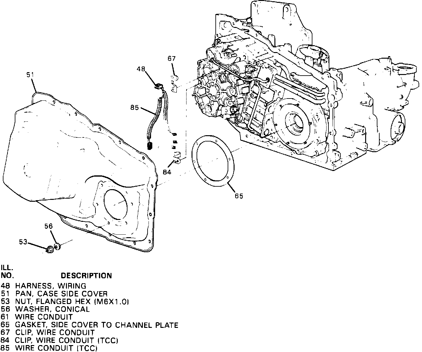 Some 1985-1989 DeVilles and Fleetwoods, 1986-1989 Eldorados and Sevilles, or 1987-1989 Allantes may experience transmission fluid leaks at the side cover due to crushing or splitting of the gasket when the cover nuts are torqued during assembly. The new side cover to channel plate gasket uses a latex coated cellulose which resists crushing and splitting. As of November 1, 1988 (Julian Date 306), all THM 440-T4/HYDRA-MATIC 4T60 and THM F-7 models have been built with the new gasket.