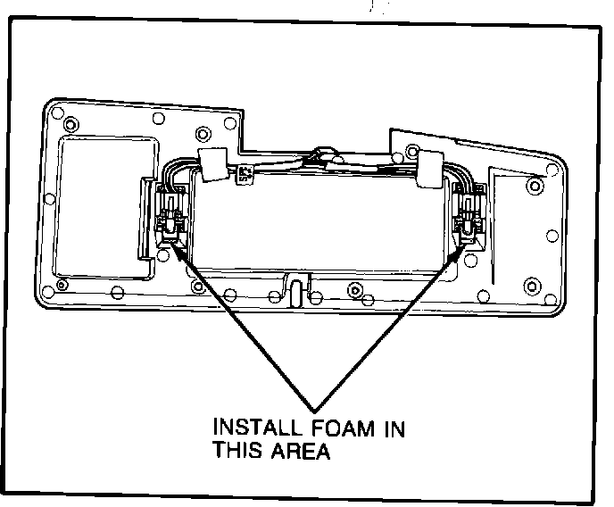 4. Install two 1/2 inch long 3/8" thick strips of self-adhesive polyurethane foam tape on the inside surface of the inner glove box panel. Position the foam so that it is touching the tip of bulb, refer to Figure 2. The foam tape can be purchased locally at most hardware stores.