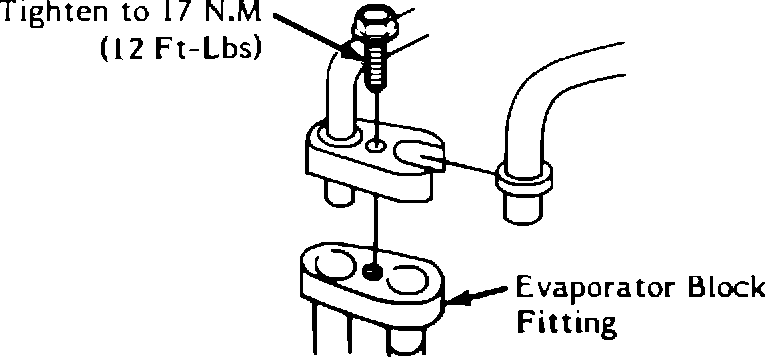 Some 1987 DeVilles, Fleetwoods, Sevilles, Eldorados and Allantes may experience evaporator block fitting cracking. This condition may be caused by over torquing the evaporator block fitting bolt. It is extremely important not to exceed the 17 N-m (12 ft.lbs.) torque specification when tightening the evaporator block fitting bolt. Excessive torque may crack the block fitting necessitating replacement of the evaporator core.
