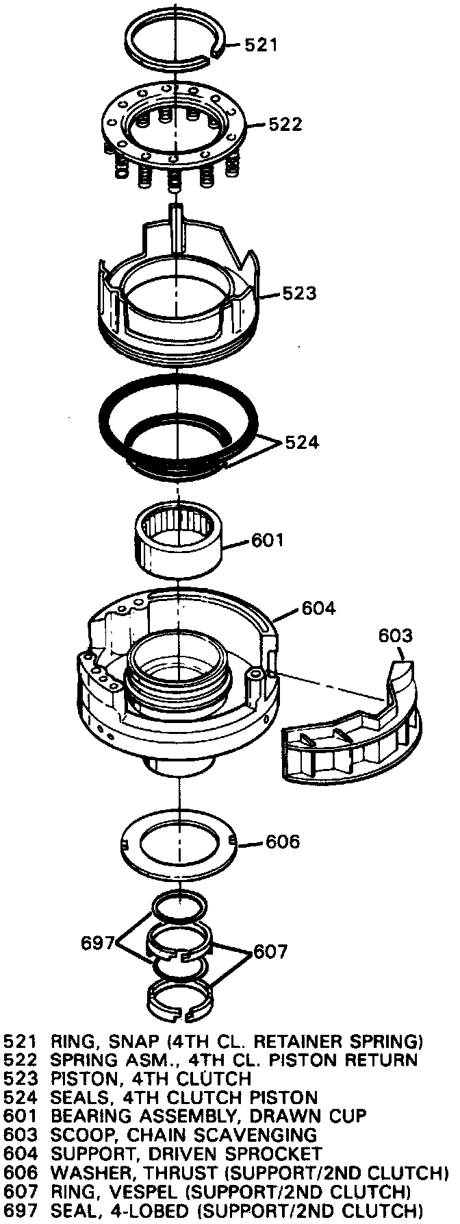 131. Inspect 4th clutch shaft for damaged bushings and splines, then the turbine shaft for damaged journals, splines and oil seals.