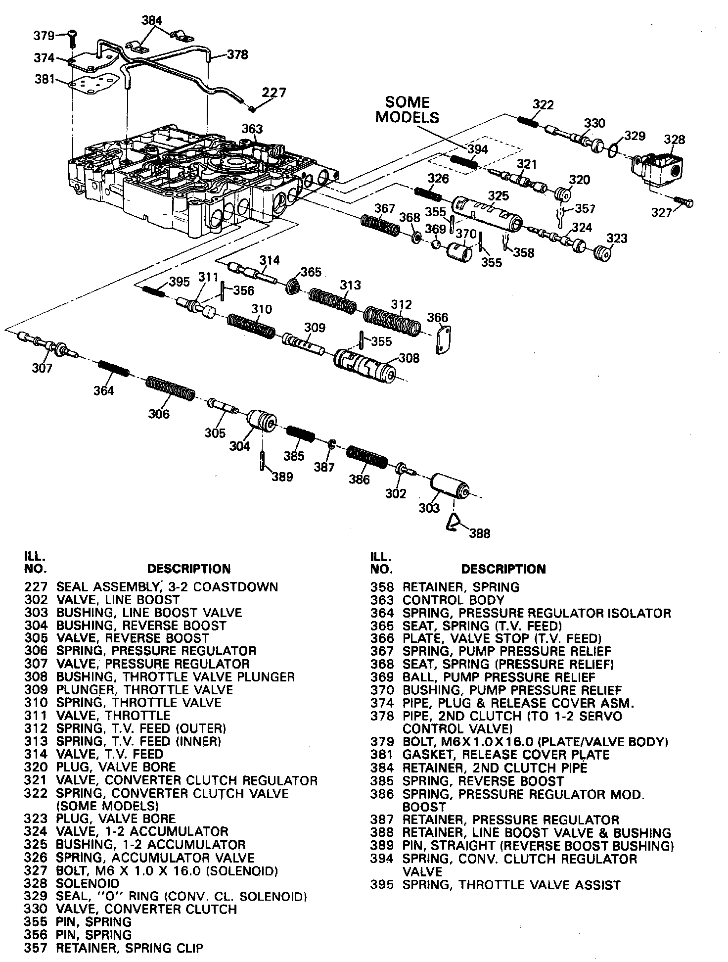 187. Remove oil pipes from accumulator cover and governor retainer, then the governor screen from pipe.