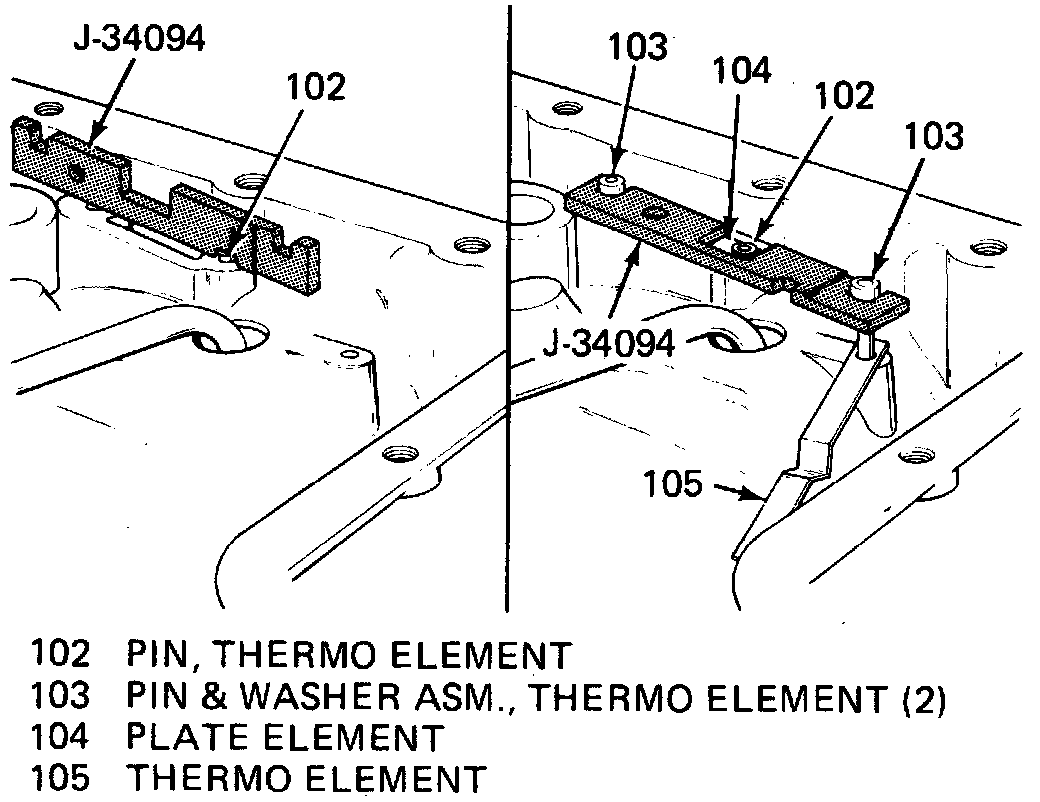 c. Set thermo pin height using tool No. J-34094, then install element plate.