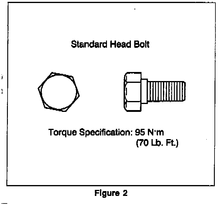 This washer face bolt replaces the PREVIOUS STANDARD HEAD BOLT (see Figure 2) and separate washer arrangement which has a torque specification of 95 Nm (70 lb.ft.).