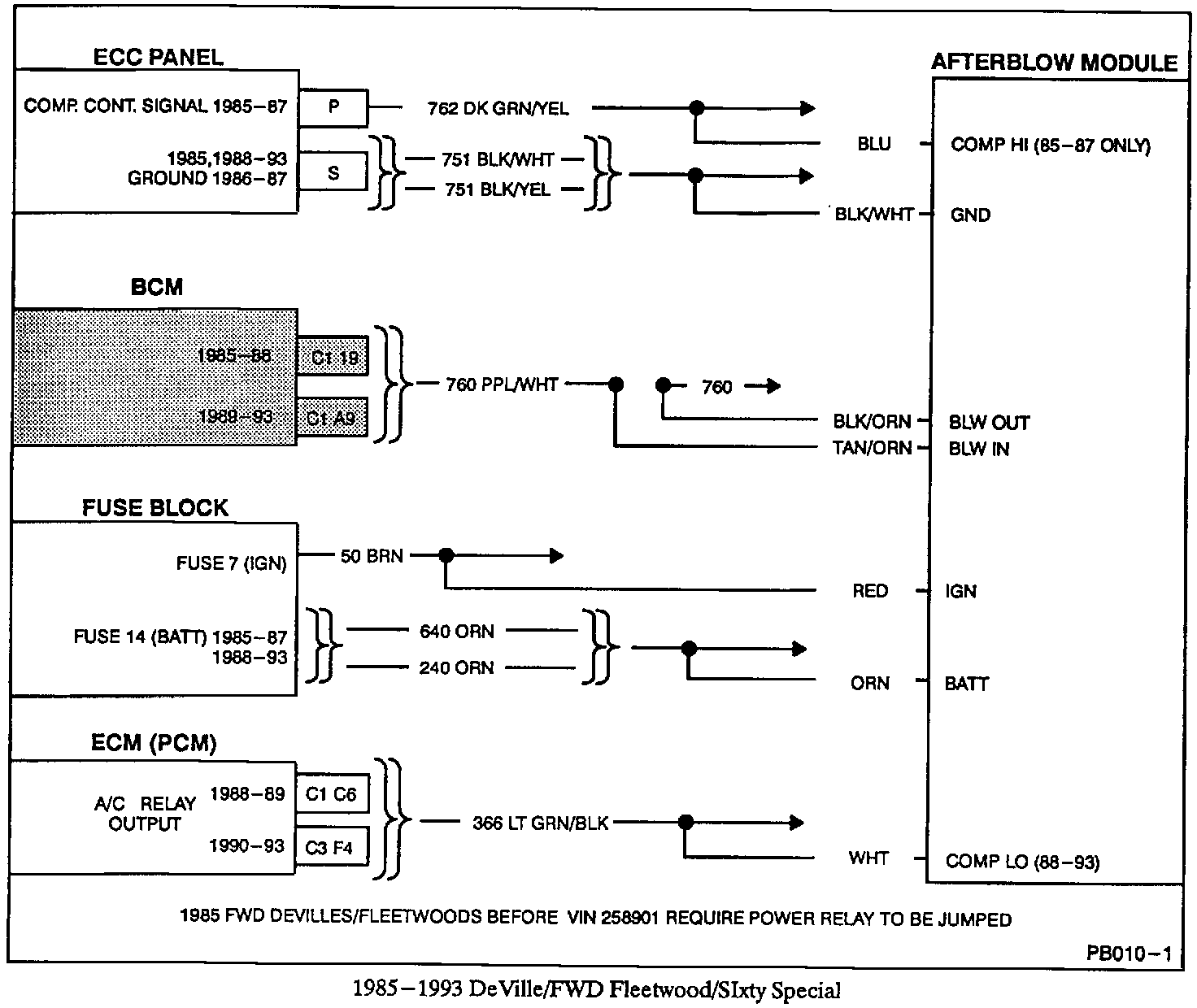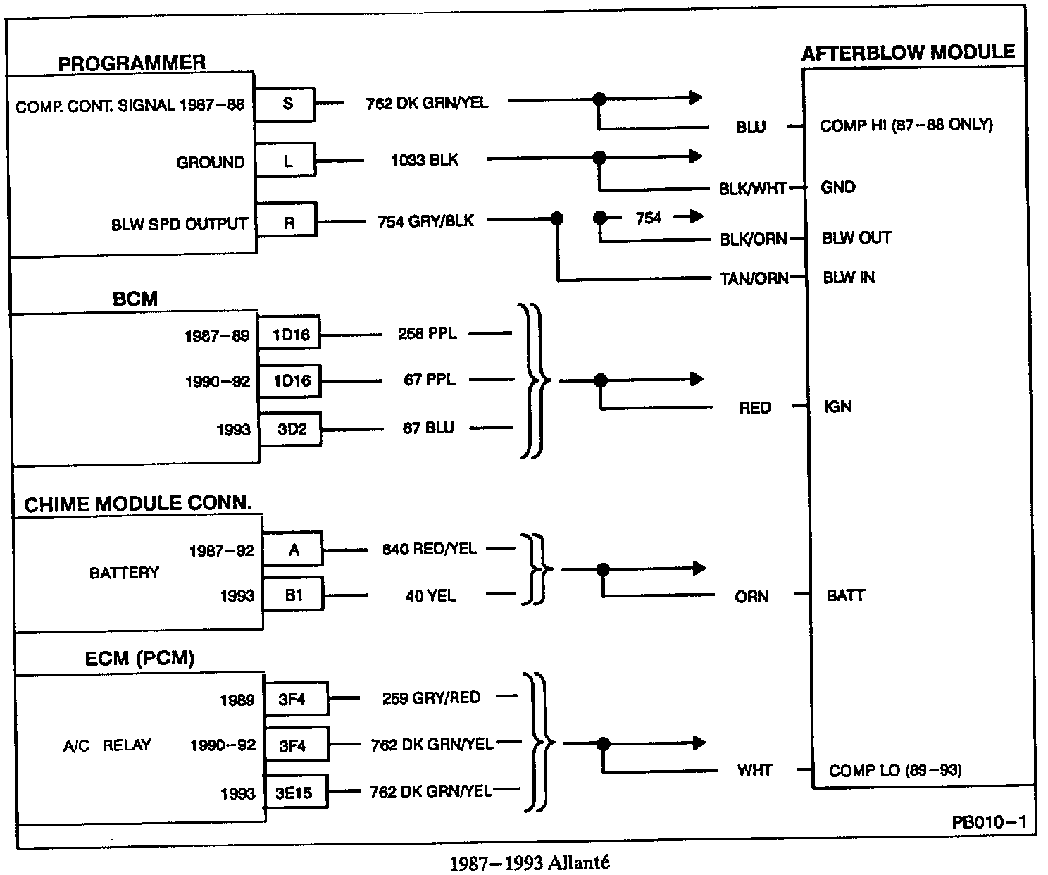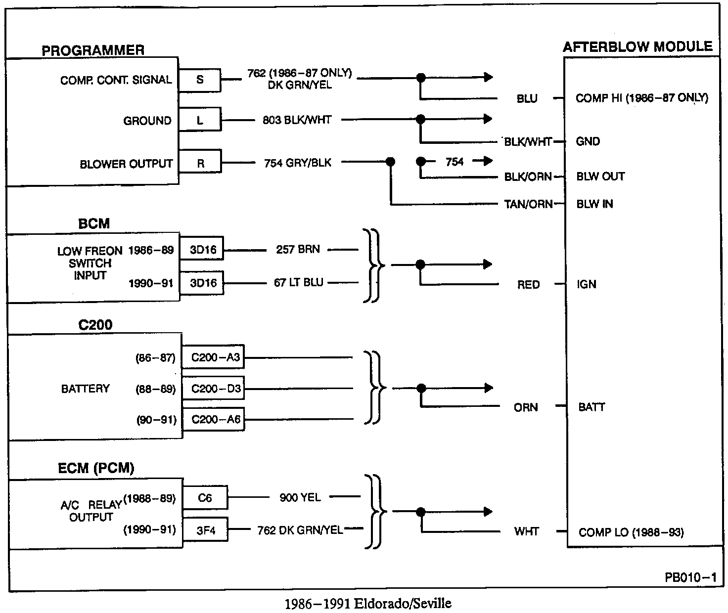 3. Splice, clip, and solder (refer to Section 8A of the appropriate Service Information Manual for splicing instructions) the various leads to the afterblow module wiring harness with the circuits shown in the corresponding wiring diagram on the following pages. Disconnect the wiring harness from the afterblow module and connect the black/white ground lead first before completing the remaining splices. Since a majority of circuits to be spliced are low current circuits, care should be taken to assure that the splices are completed and soldered correctly.