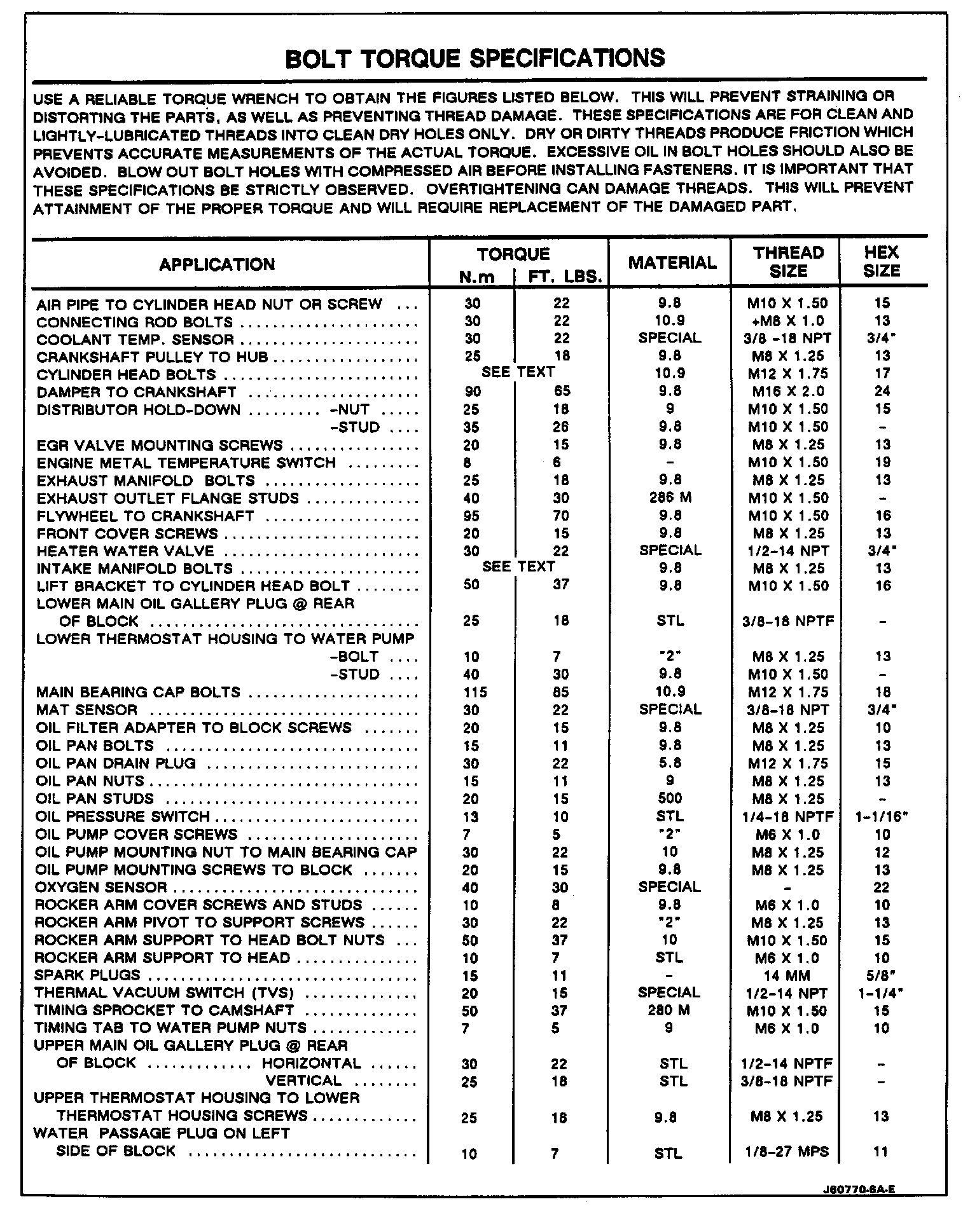 Torque Specifications:
