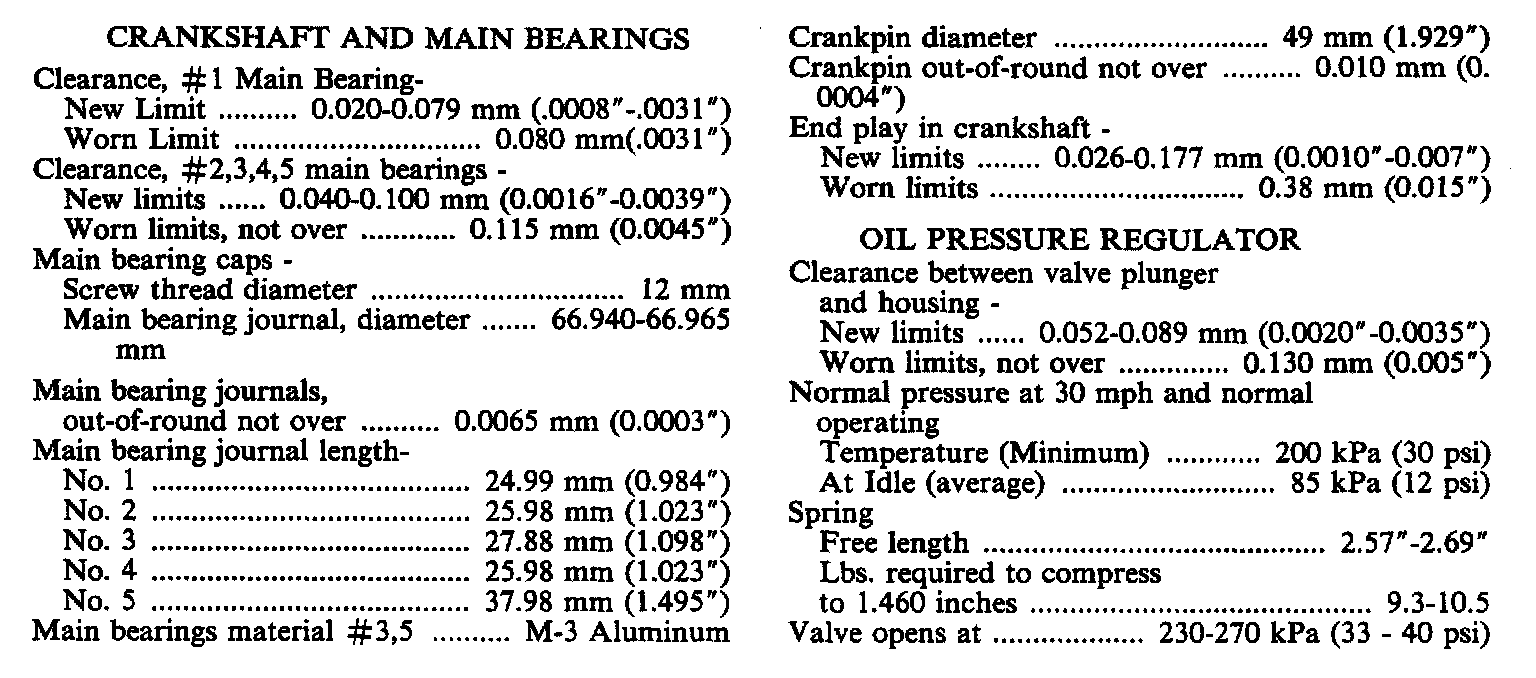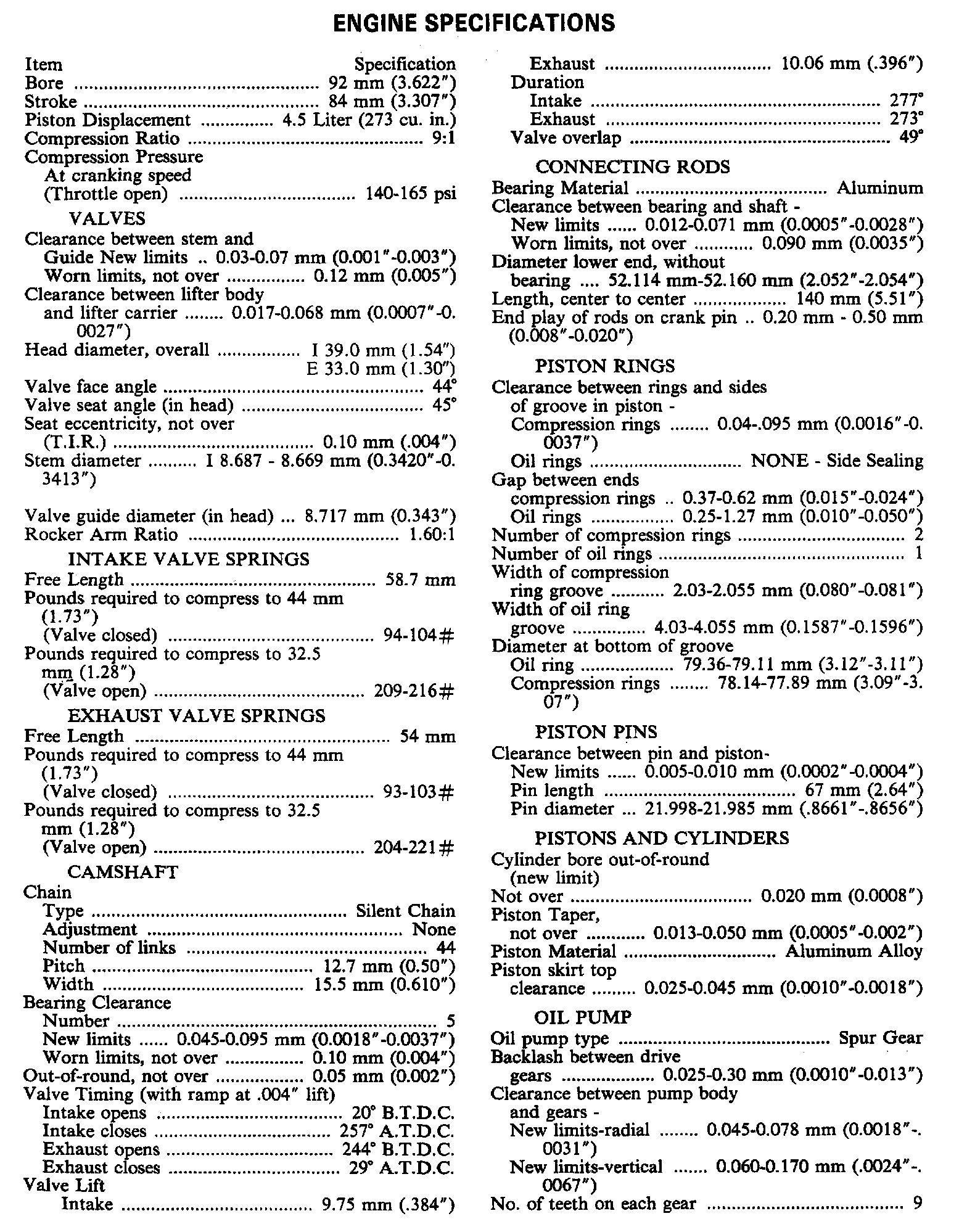 Engine Specifications:
