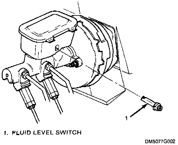 - Remove fluid level sensor switch using needle nose pliers to compress switch locking tabs at inboard side of master cylinder.