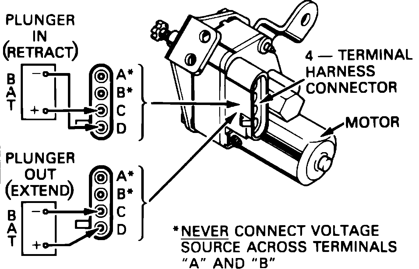 9. Extend ISC plunger by connecting ISC terminal D to 12 volt power source and terminal C to ground.