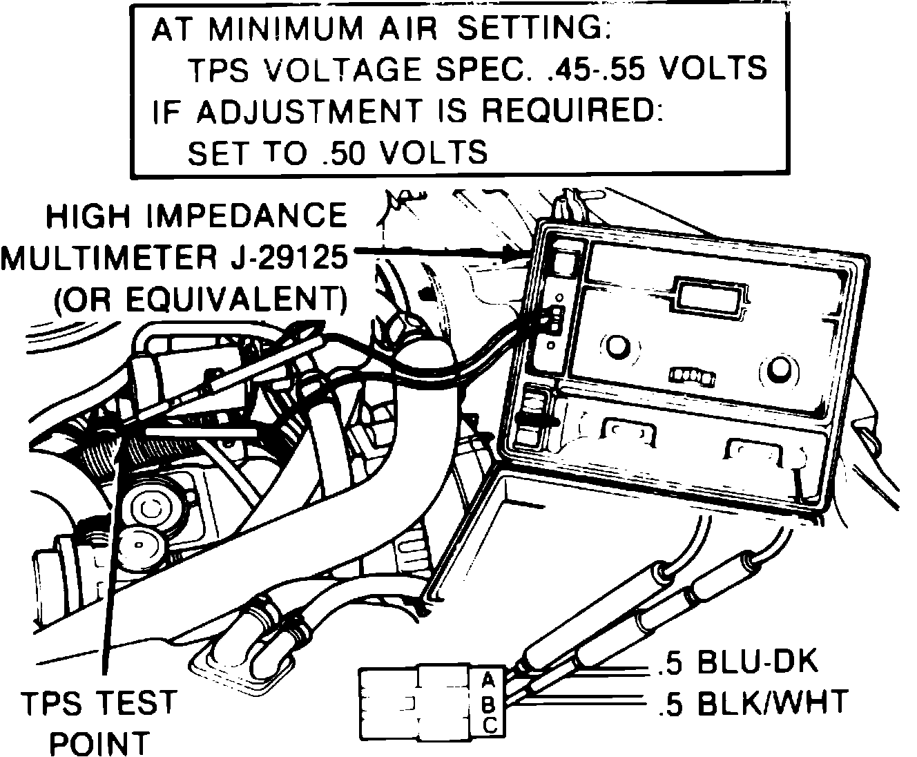 b. If TPS voltage measures 0.45 - 0.55 volt, no adjustment is necessary. Proceed to step 13.