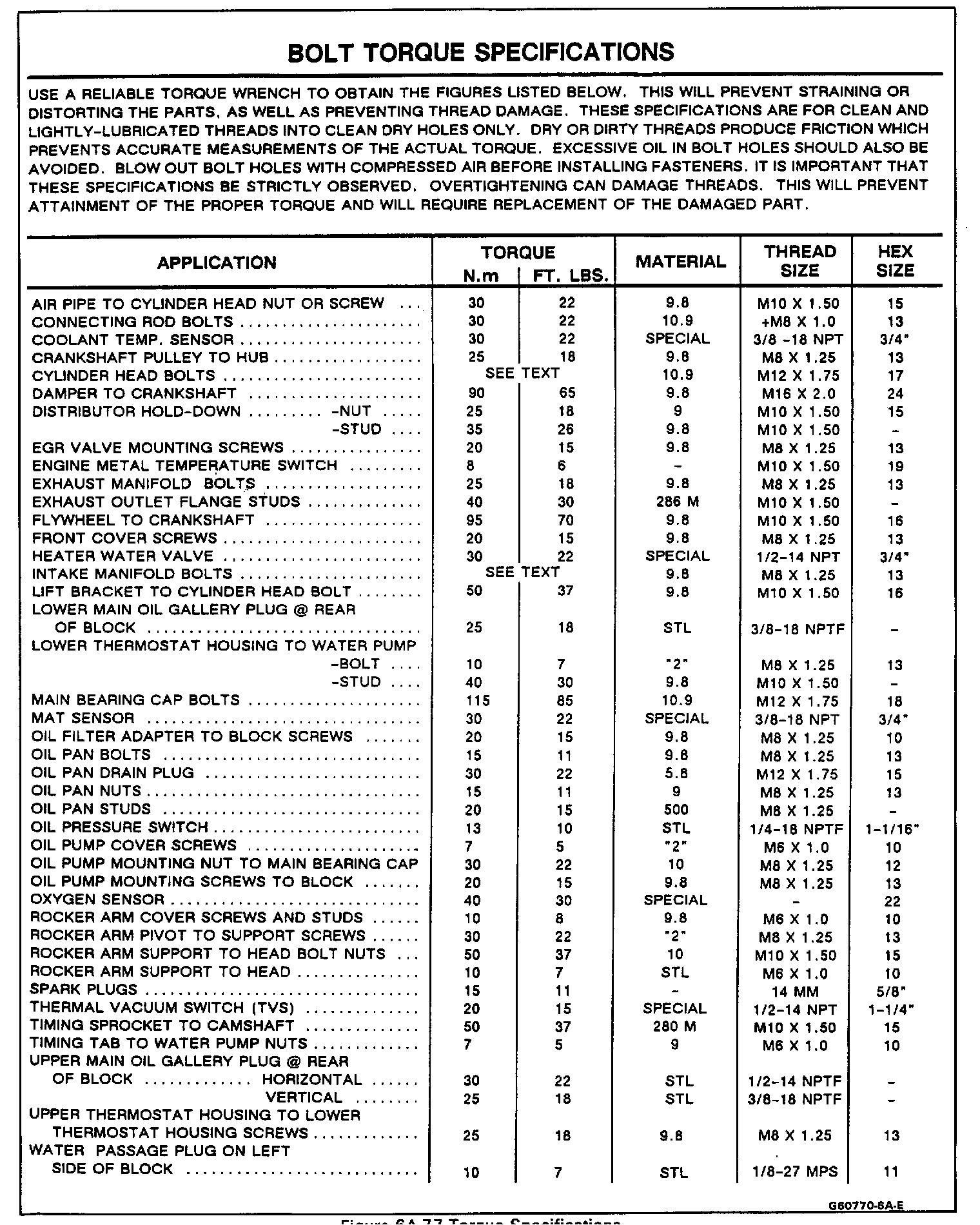 Torque Specifications: